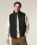 Sleeveless. Elastic recycled binding at cuffs and hem. Inside back neck binding loop and back neck tape. Plastic Vislon zip with metal zip pull and cord ends. Fully bonded inside polar fleece layer with anti-pilling finish. Front side contrast softshell welt pockets with hidden zip closure. Contrast softshell fabric at pocket, back yoke and outer collar band. Inside invisible zip at the wearer’s left chest for easy decoration.